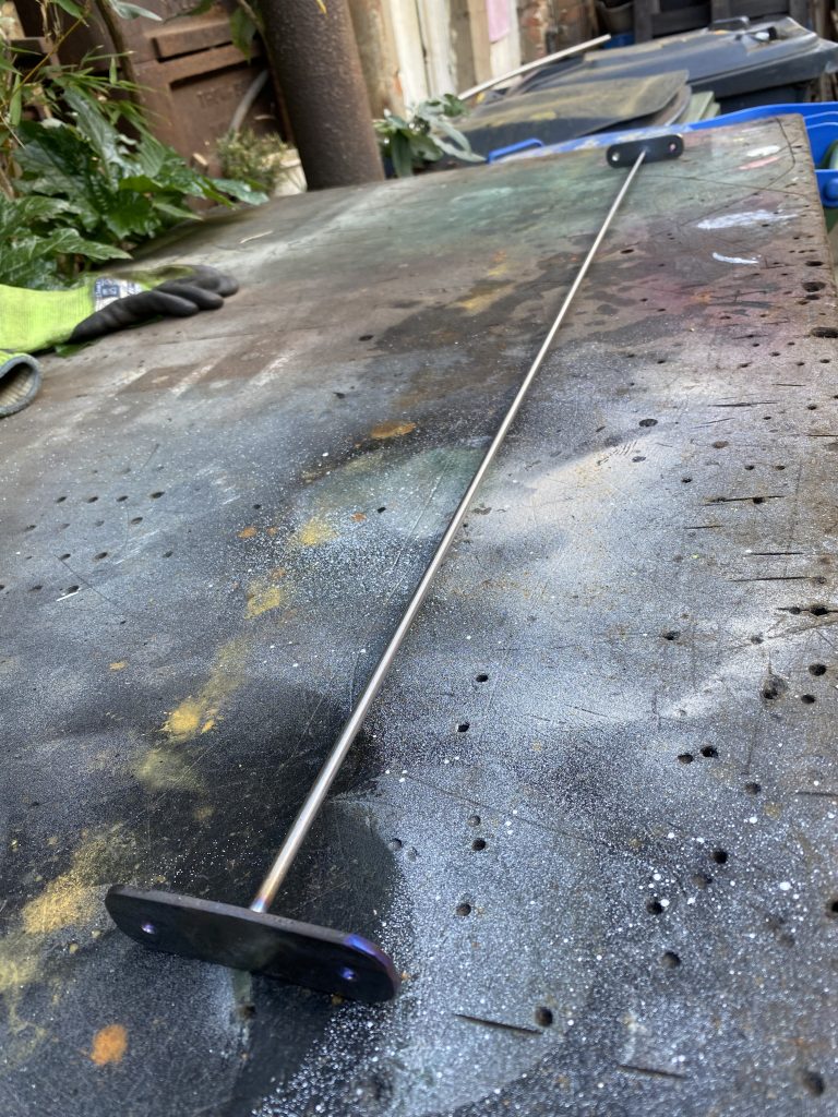 On Thursday, I was given a small job making something that is supposed to hold two things apart. It looks like a very long “H”. Then I started making a small bench — another prop.