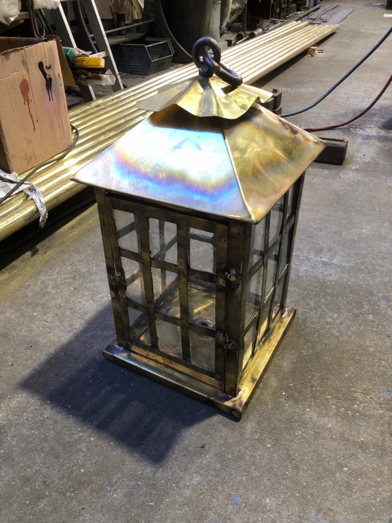 On Tuesday, I was working with James on brass lanterns! It was sheets of brass. Brass is difficult because it is toxic. The fumes burn my eyes and scratch my throat. And it stinks! Ewww… It was more difficult because the sheets of metal would warp and bend :/